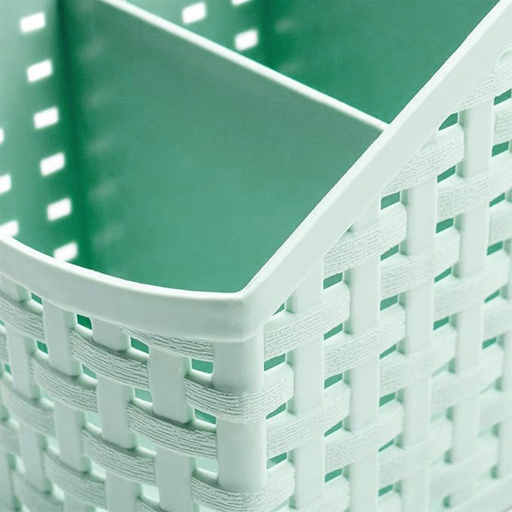 Designed with 4 sloped compartments, this basket allows effortless organization of stationery, cutlery, toiletries, cosmetics, or craft tools. Its compact footprint fits easily on countertops, study tables, bathroom shelves, or work desks, making it perfect for both residential and professional environments.
