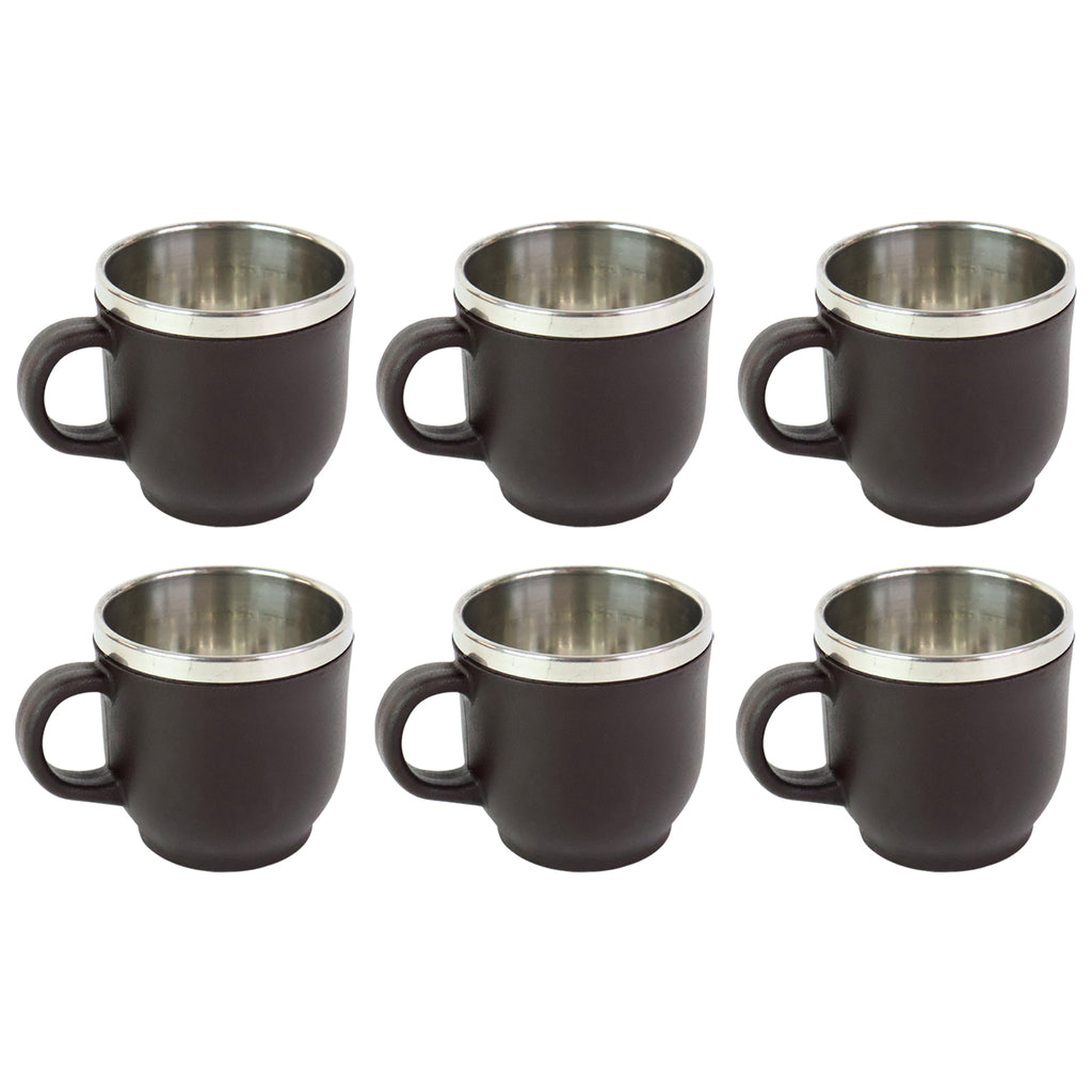Apex Premium Double Wall Stainless Steel Cappuccino Mug Gift Set – 100 ML Capacity, Elegant Brown Finish with Handle – Set of 6 Insulated Coffee Mugs for Tea, Coffee, & Daily Use