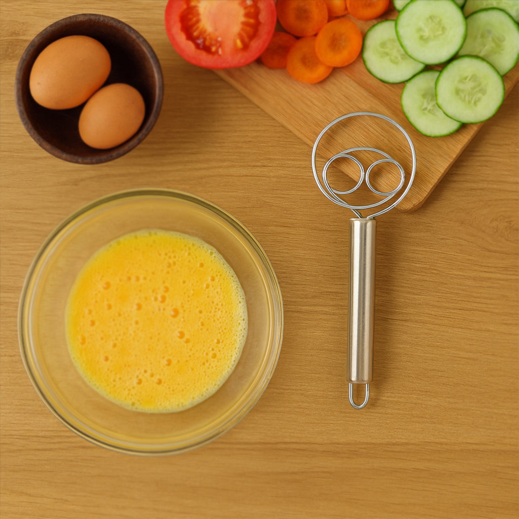 2-Piece Stainless Steel Spiral Hand Whisk Set with Wall Hooks – Manual Egg Beater & Mixing Tool for Batter, Sauces, Coffee Froth & Everyday Cooking