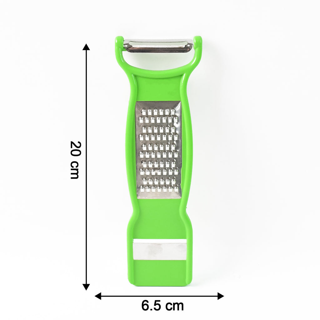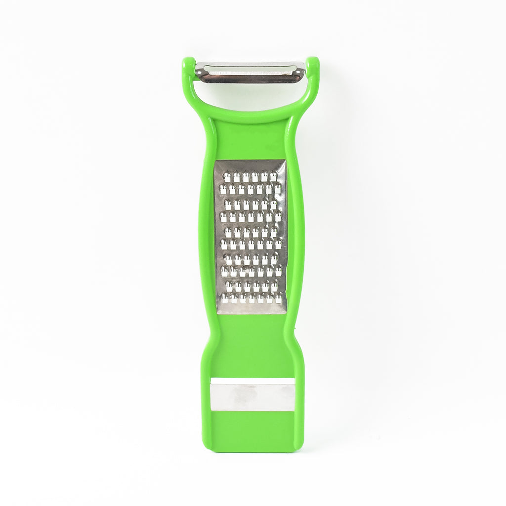 • 3-in-1 design: Peeler, grater, and slicer in one compact tool.