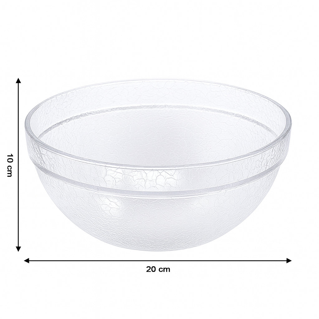 Prepare and serve with ease using this premium transparent textured Idli Bowl, specially designed for multipurpose kitchen use. Its deep, wide design allows effortless mixing of idli or dosa batter, salads, or desserts while preventing spills during stirring. The crystal-clear body with a frosted crackle texture adds a refined touch to your kitchen and dining setup. Made from sturdy, food-safe plastic, this bowl is lightweight yet durable, making it ideal for both daily cooking prep and table serving. Whether you’re mixing batter, storing leftovers, or serving fresh fruits, this bowl delivers both elegance and practicality.