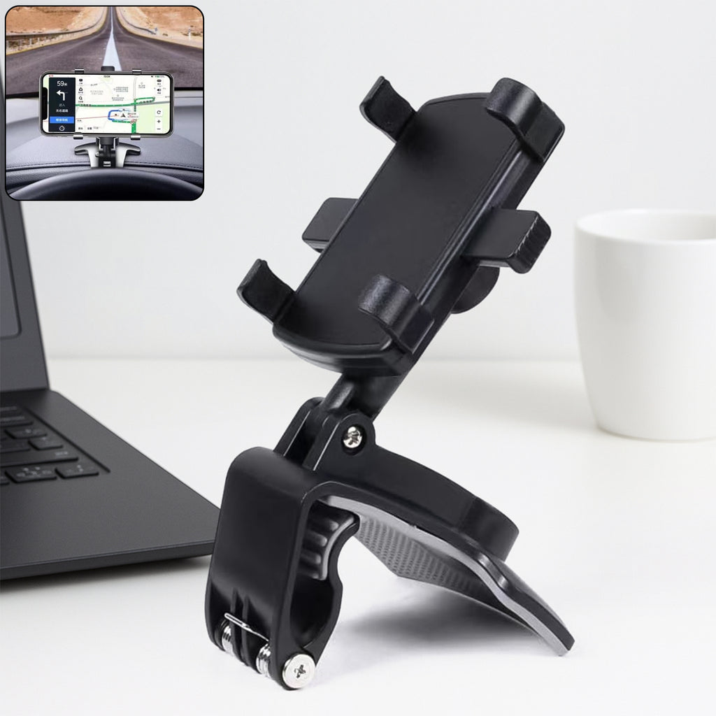 Universal Car Dashboard & Desk Mobile Phone Holder – Strong Adjustable Clip Mount with Anti-Slip Grip, 360° Rotation & Secure Locking System – Multipurpose Smartphone Stand for GPS Navigation, Calls, Video Streaming & Hands-Free Use (1 Pc)