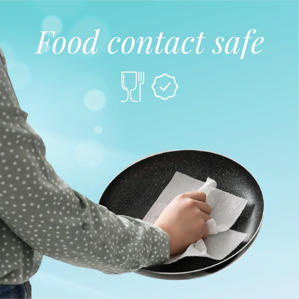 Freshee Super-Absorbent Kitchen Roll delivers fast liquid pickup, strong wet-strength and a soft touch in one sheet. This 4-in-1 kitchen towel (wicking + wet strength + softness + easy-tear perforations) comes as a convenient pack of 4 rolls, each with 60 perforated sheets — a total of 240 sheets for everyday cooking spills, grease, drying dishes and food-prep cleanup. Made from quality cellulose fibers with an embossed texture for extra absorbency, these towels are lint-free, hygienic for food-adjacent use and store compactly in the pantry or dispenser.