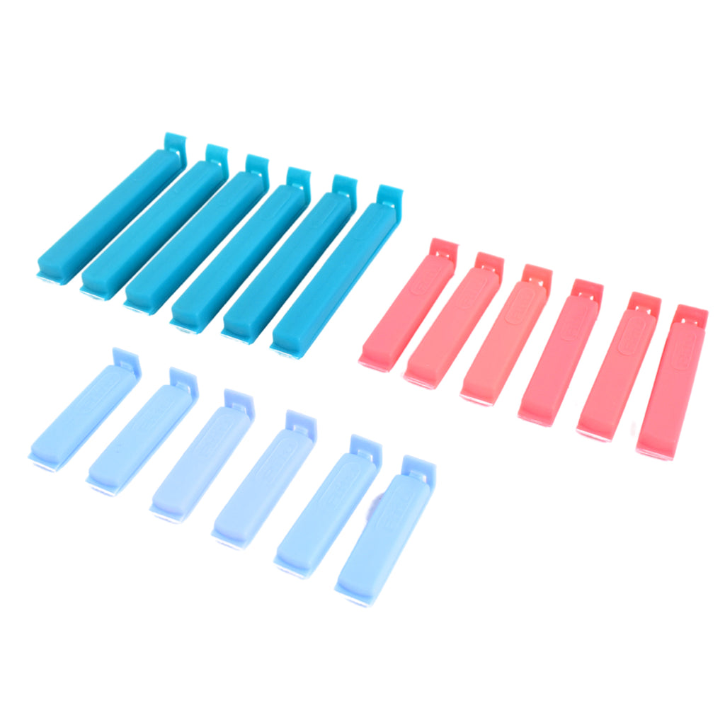 Keep your kitchen fresh and organized with this 18-piece multicolor pouch sealer clip set. Designed to tightly seal opened food packets, snack bags, freezer items, and more, these clips help retain freshness and prevent spillage. Crafted from durable, food-safe plastic, the clips are reusable and come in assorted sizes for all kinds of packaging. Whether sealing chips, cereals, or frozen vegetables, these handy clips offer a quick and eco-friendly alternative to disposable ties and tapes.